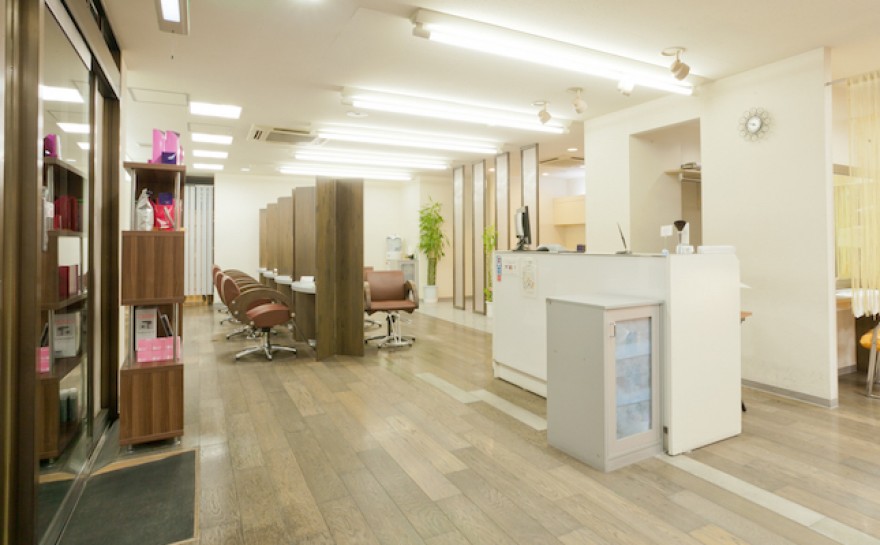 JR河辺駅北口を出、左手デッキをまっすぐ行き、セブンイレブン前階段を降り、華の舞前を通過し当店の看板が出た階段を上ってすぐ2階にサロンがあります。