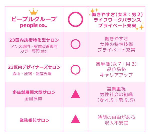 美容業界で長く輝き続けるためには、「女性が働きやすい環境かどうか」は大切な比較ポイントです。ライフステージの変化に柔軟に対応できる職場ほど、安心してキャリアを積むことができます。弊社はスタッフの約8割が女性で、産休・育休後も復帰しやすい体制や時短勤務などライフワークバランスを重視した働き方が可能です。プライベートも大切にしながら美容師としての夢を叶えられる環境が整っており、長く安心して活躍できます。