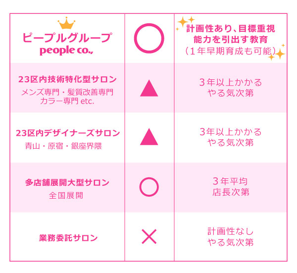 就職後、いつスタイリストとして活躍できるかは、学生にとって最も大切な比較ポイントのひとつです。計画的なカリキュラムと明確な目標設定があるほど、自分の成長を実感しやすく、途中で挫折せずに前進できます。弊社では一人ひとりの習熟度に合わせた育成計画を立て、目標重視の教育で主体性とやる気を引き出します。最短1年での早期デビューも可能で、夢への最短ルートを一緒に描ける環境です。