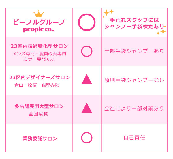 美容師にとって「手を守れる環境かどうか」は、長く働き続けられるかを左右するとても大切な比較ポイントです。薬剤や水仕事による手荒れが原因で、美容師を続けられなくなるケースは少なくありません。弊社ではその対策として、手袋を着用してシャンプーや薬剤施術を行うことが可能です。大切な手を守りながら安心して働ける環境を整えることで、将来にわたって美容師という仕事を続け、キャリアを築いていくことができます。